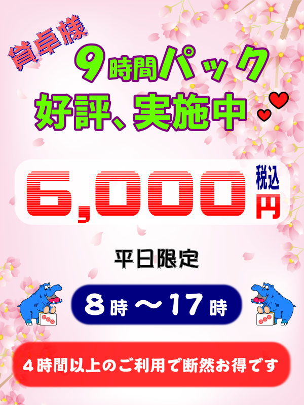 四人打ち 600円(税込) 【セット】 ☆「9時間パック」やってます! 平日限定8時~17時の間 6,000円(税込) / 1時間(1卓) ※ソフトドリンク・一日チャージ料金440円(税込) を頂戴しています。 ☆通常料金 平 日 1,320円(税込) / 1時間(1卓) 土日祝日 1,760円(税込) / 1時間(1卓) 平日学割 1,100円(税込) / 1時間(1卓) ※ソフトドリンク・一日チャージ料金440円(税込) を頂戴しています。 |
